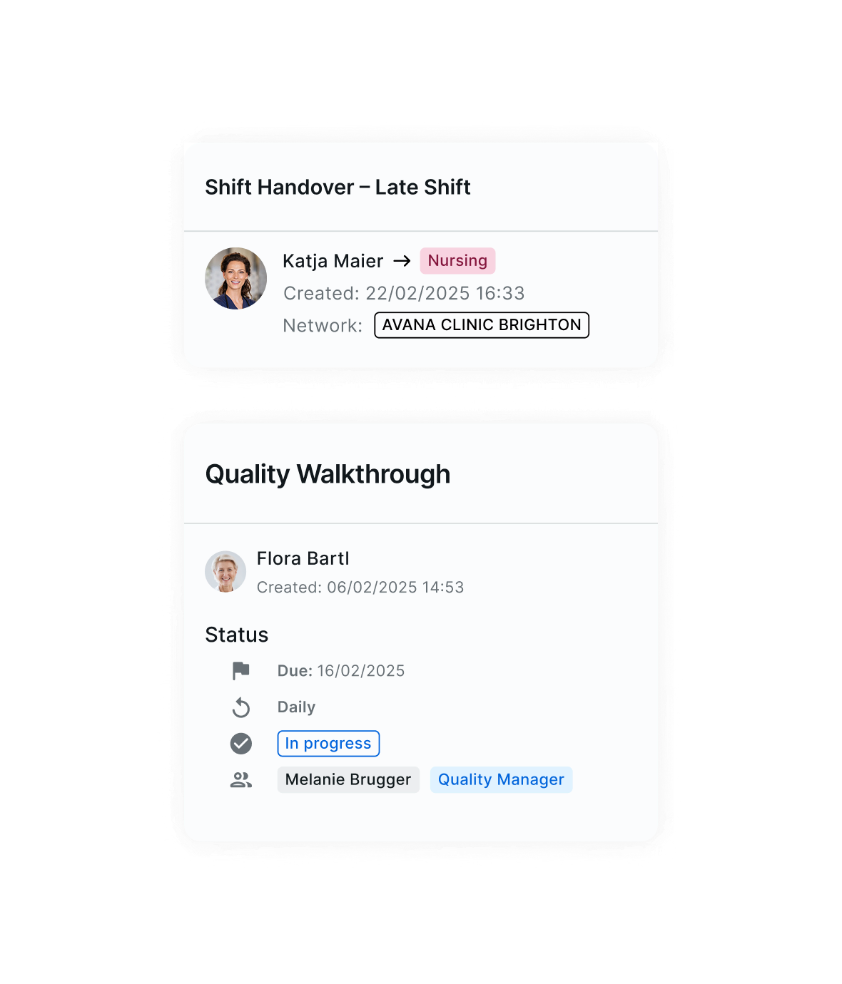 Handle everyday tasks using pre-set checklists—perfect for shift changes, facility rounds, resident move-ins, or staff onboarding.
